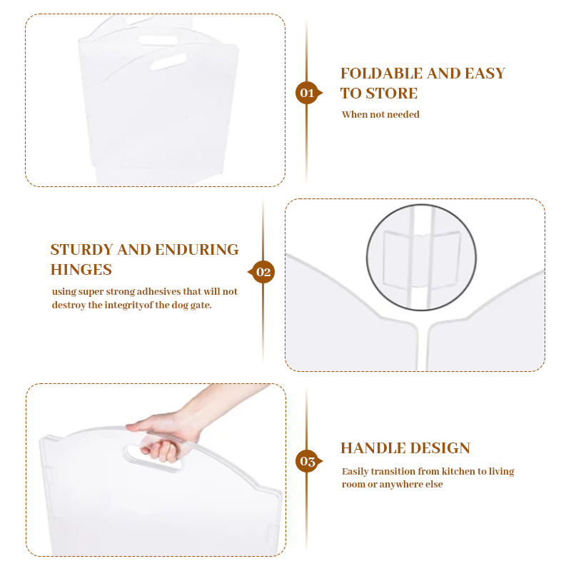 Keep your pets safe and your home stylish with our innovative clear acrylic pet gate! Unlike traditional metal or wooden gates, this 3-panel folding design offers full visibility while creating a secure barrier for doorways, stairs, and hallways. Perfect for pet owners who want functionality without compromising aesthetics!