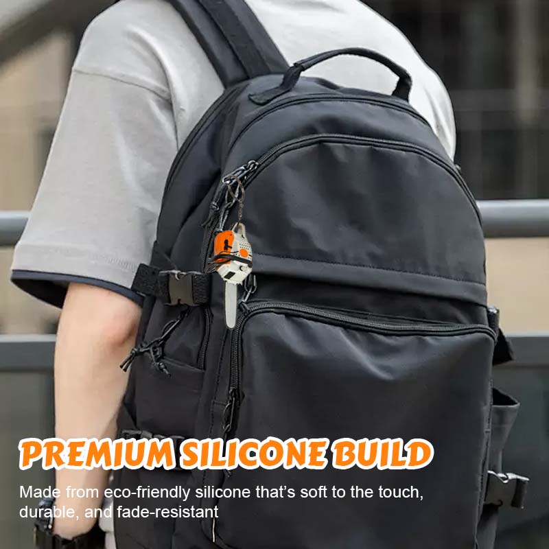 - Features a cute yet bold chainsaw-inspired shape that breaks free from boring keychain styles