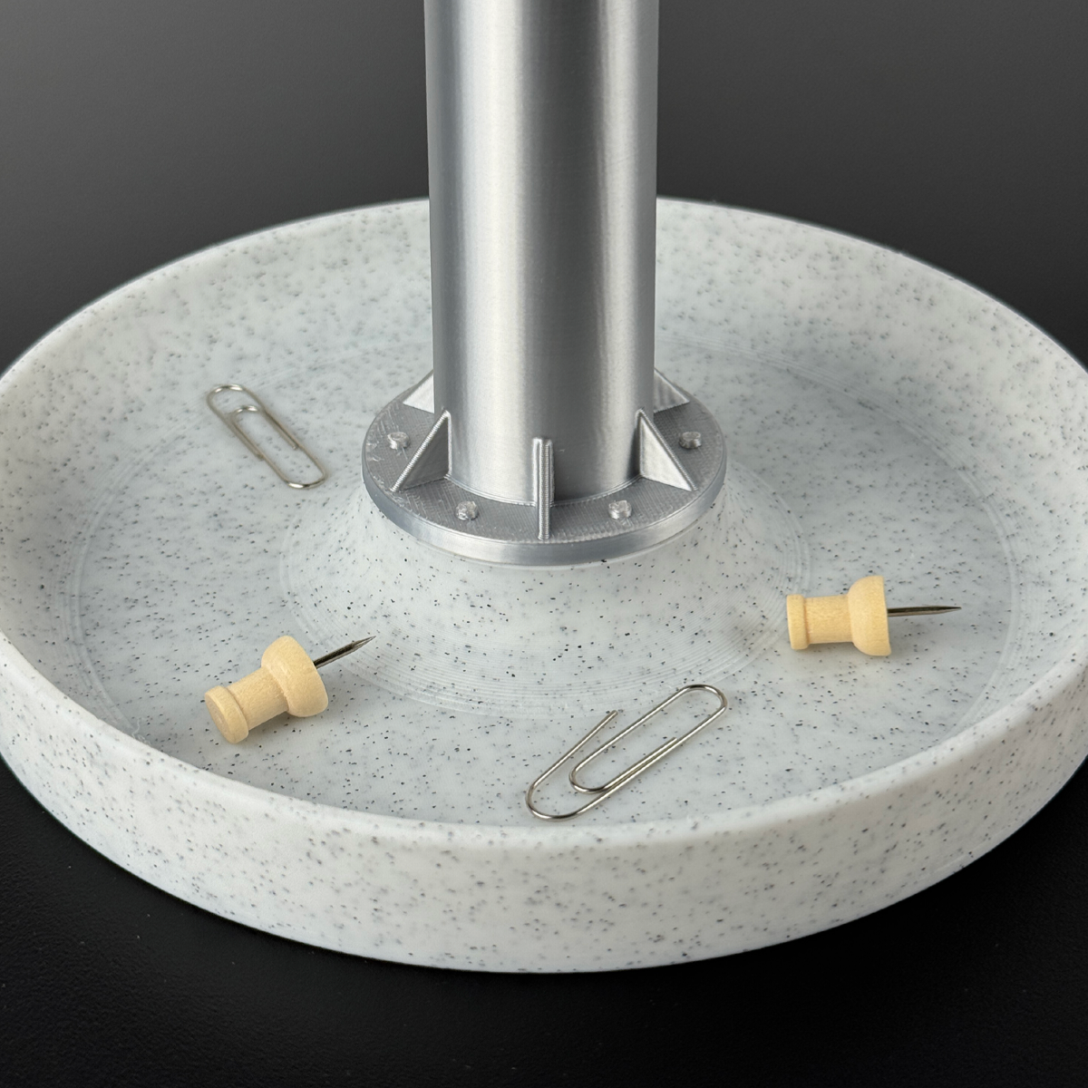The solid base doubles as a tray, ideal for holding paper clips, thumbtacks, small stationery, or decorative items. A clutter-free solution that adds balance and practicality to your desk.