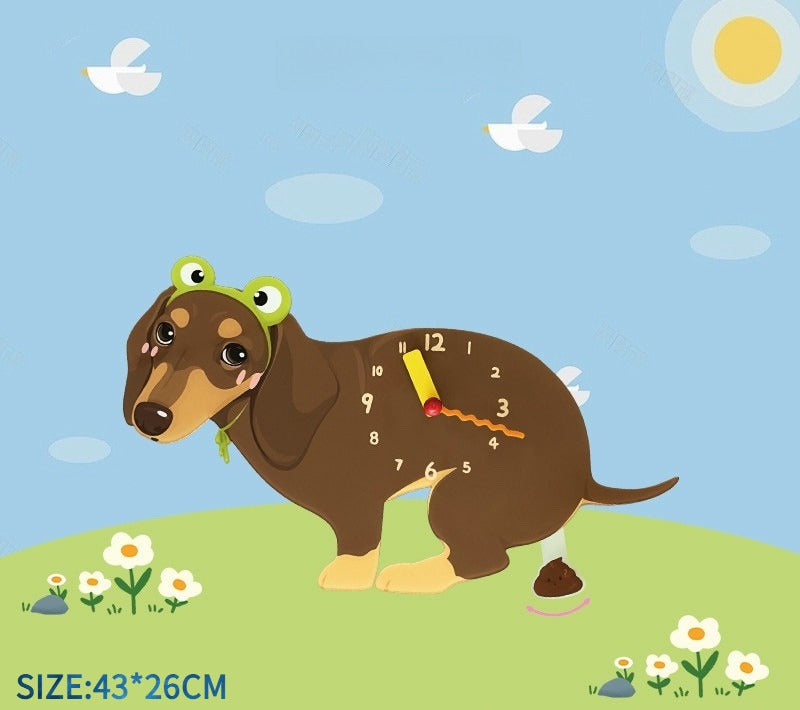 A cute small dog wall clock from the [Anytime Anywhere] series — silent, easy to hang with no drilling required, and perfect as a cozy home decor piece or birthday gift for dog lovers.