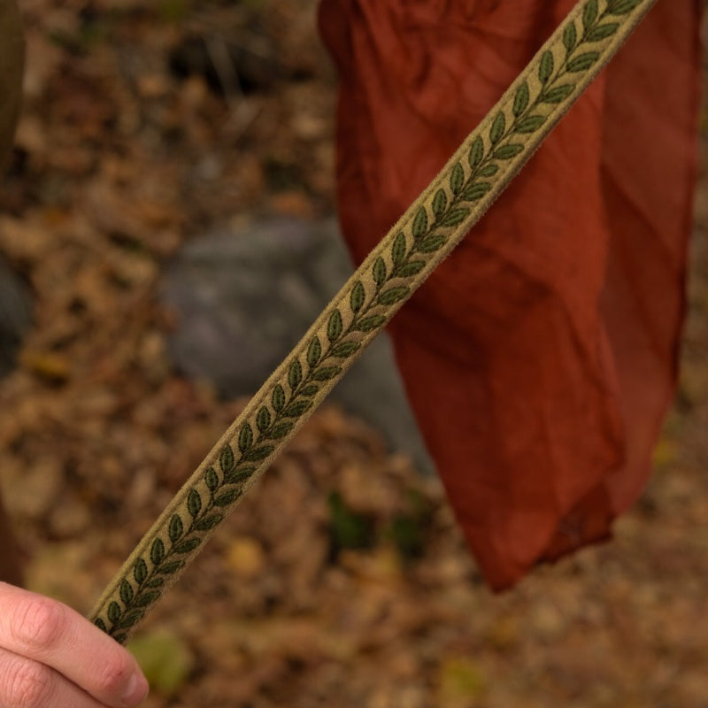The strap features a beautiful embroidered leaf design, adding an extra layer of craftsmanship and fairy-tale charm. Adjustable for shoulder or crossbody wear, making it comfortable for long strolls or festival days.